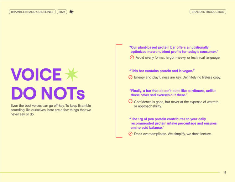 To address this, Bramble was developed as a playful, performance-driven brand that delivers vegan, organic, and gluten-free protein bars with clean ingredients and a satisfying crunch.